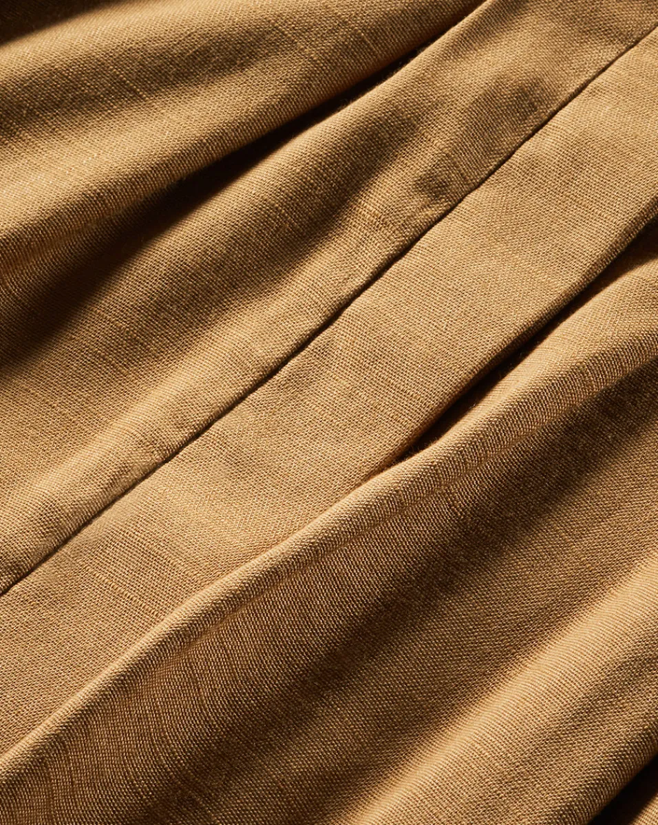 Expertly tailored from breathable stretch linen, this midi style features a relaxed fit, a crisp collar and roll-tab sleeves.