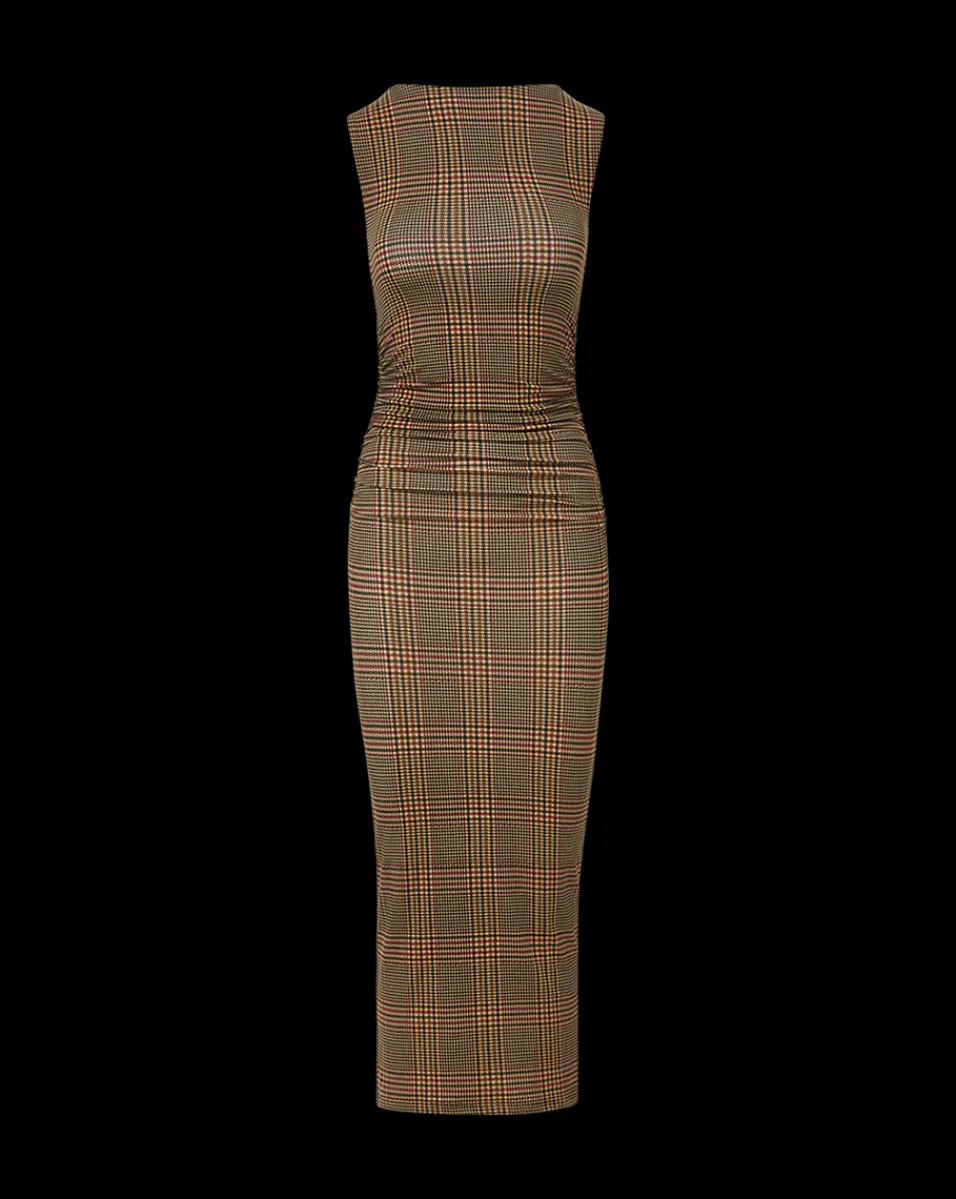 Body-skimming through the bodice and hips, the plaid Charissa dress centers on thoughtful construction, including side ruching to ensure a perfect it.