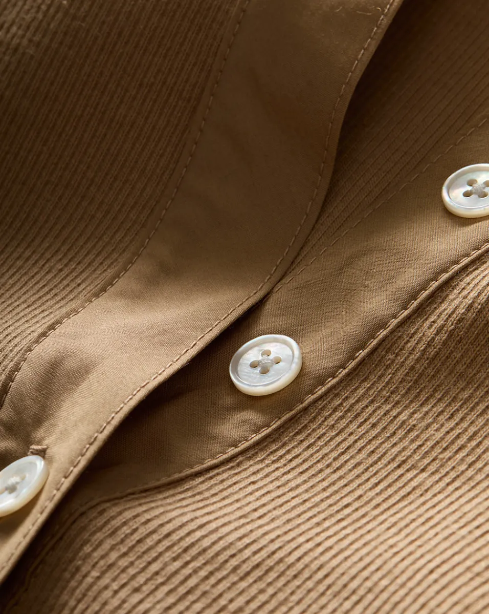 Made from premium stretch cotton, the Coralee top is a feminine take on the classic button-down shirt, with puffed short sleeves and a split V-neck.