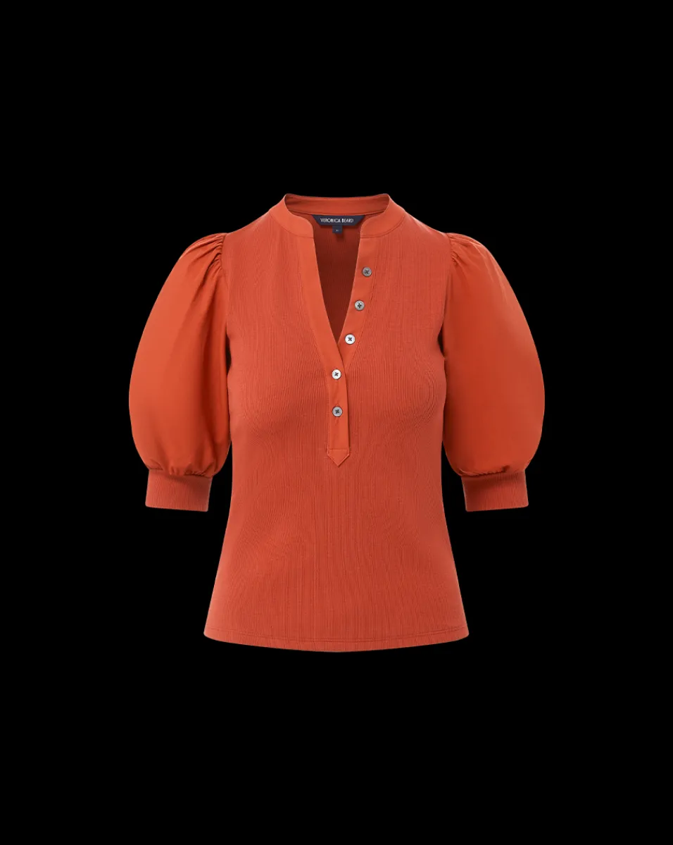 Coralee Puff-Sleeve Top in Brick Red>Veronica Beard Clearance