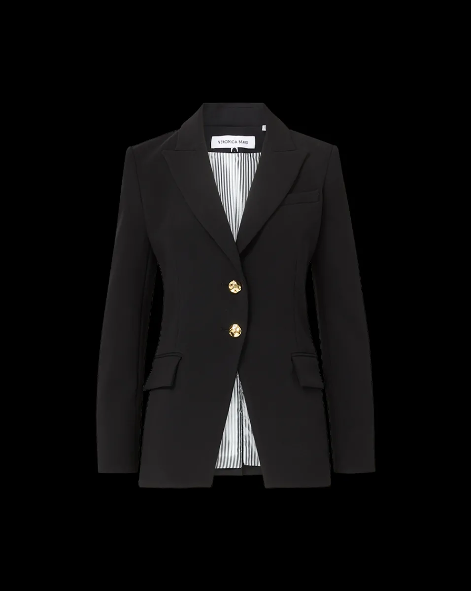 Darts along the front further the waist-defining effect of this tailored blazer.