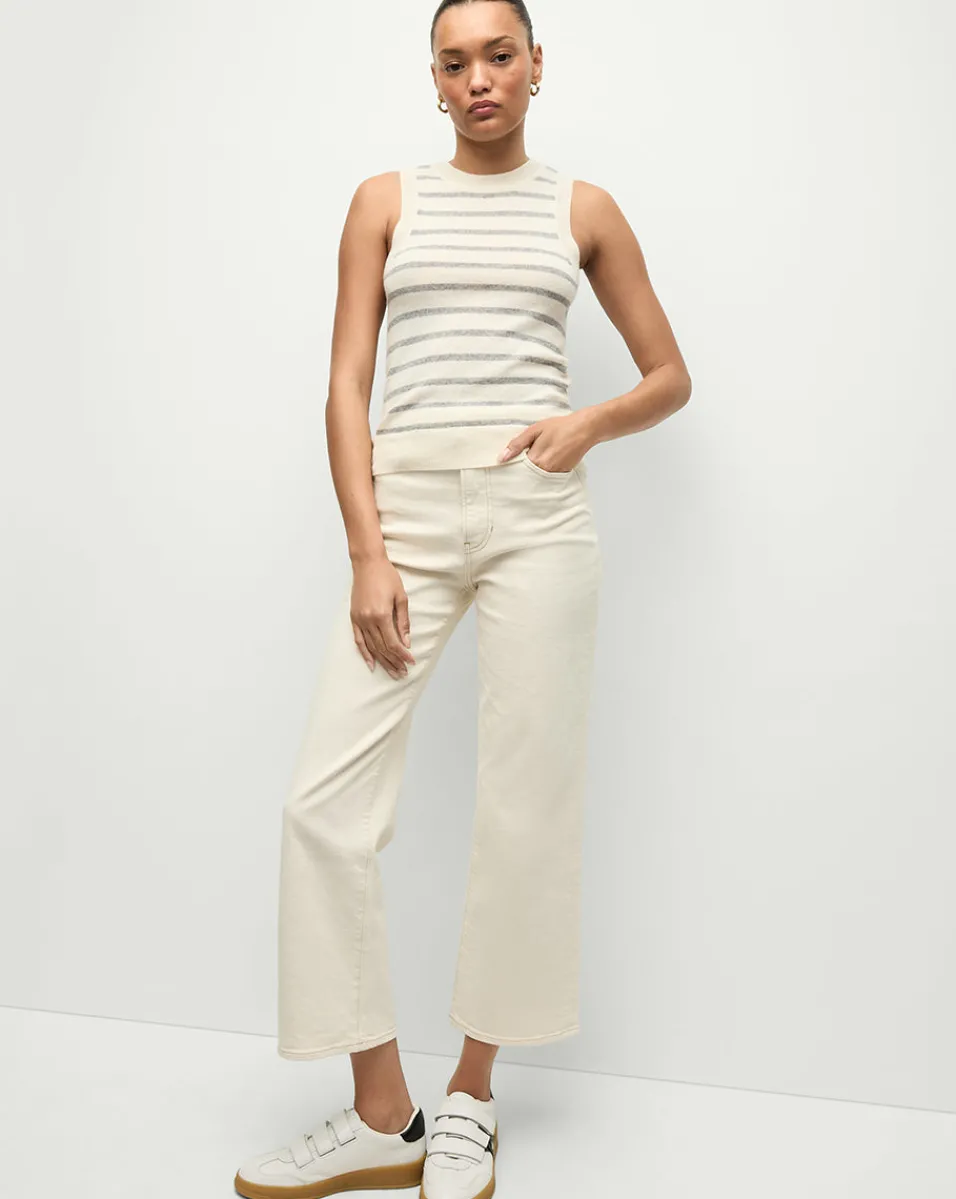 Jerrel Striped Cashmere Tank in Ivory/Heather Grey>Veronica Beard Outlet