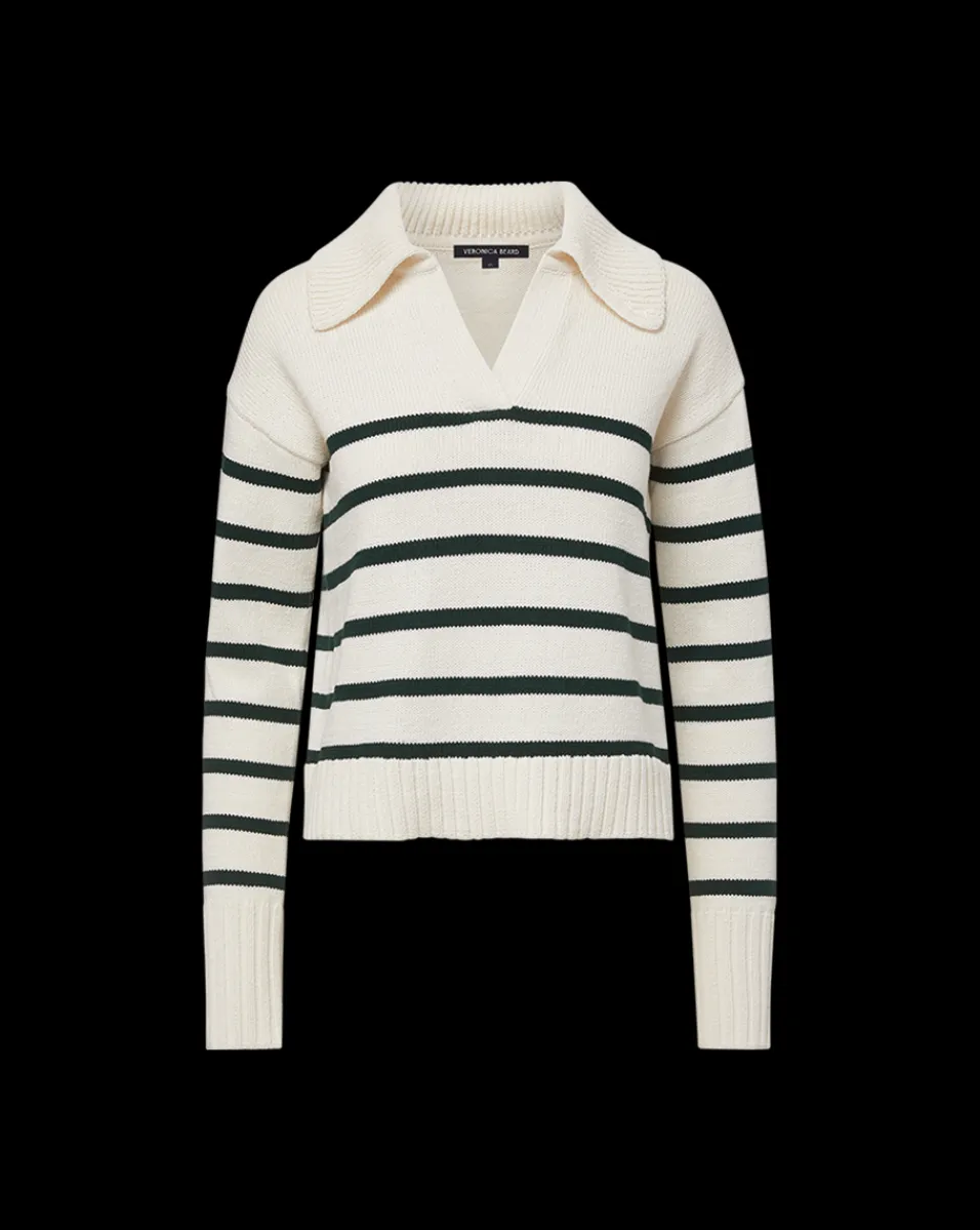 Jovie Striped V Neck Sweater in Ivory & Green>Veronica Beard Outlet