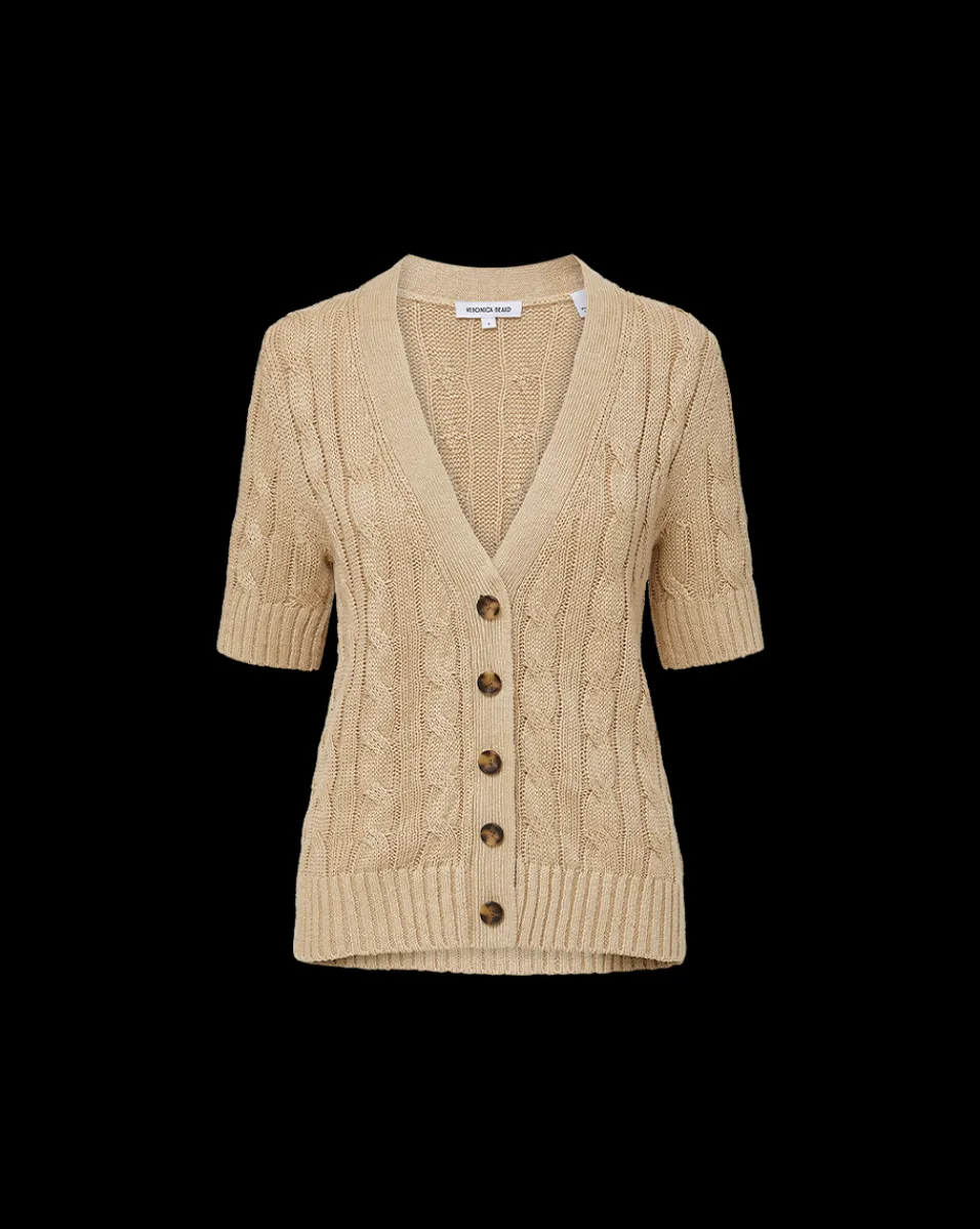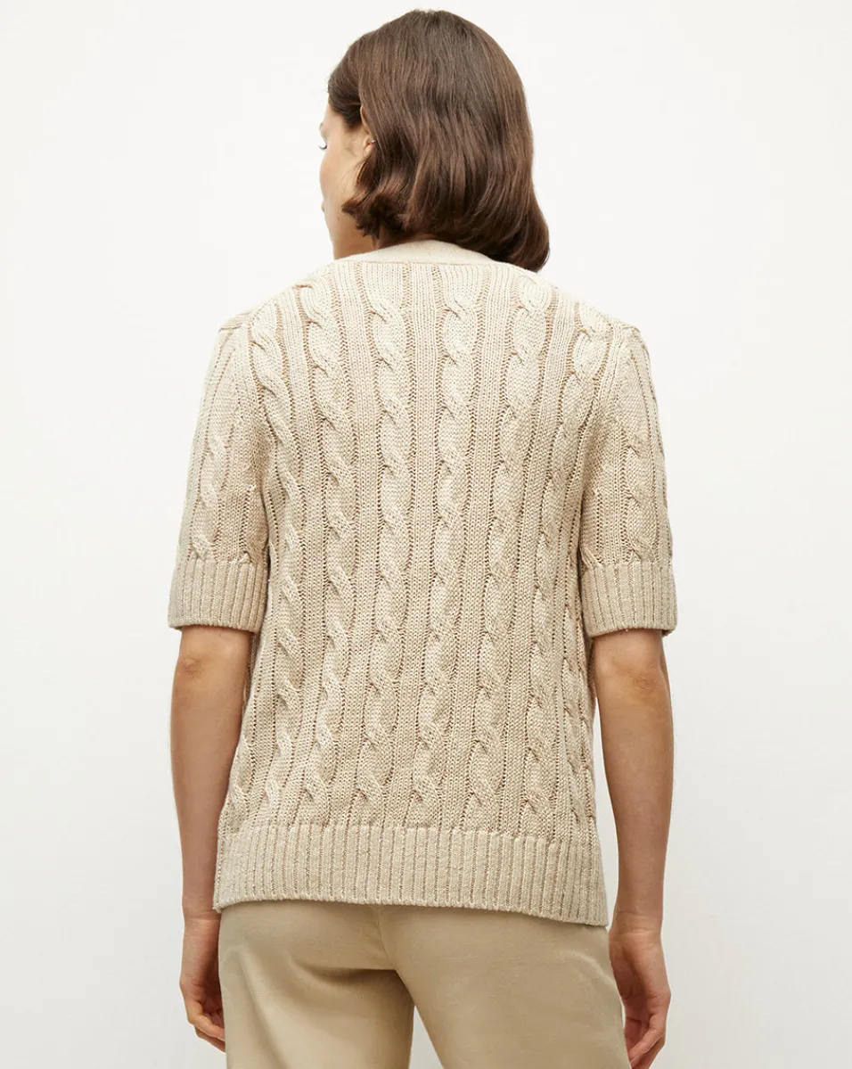 Designed to pair with our Jerrel tank, this silk-linen cardigan features the same summer-weight cable knit.