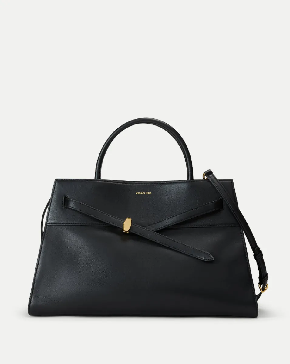Crafted from smooth, supple leather with an adjustable belted strap, it’s designed with both a structured top handle and a removable shoulder strap for maximum versatility.