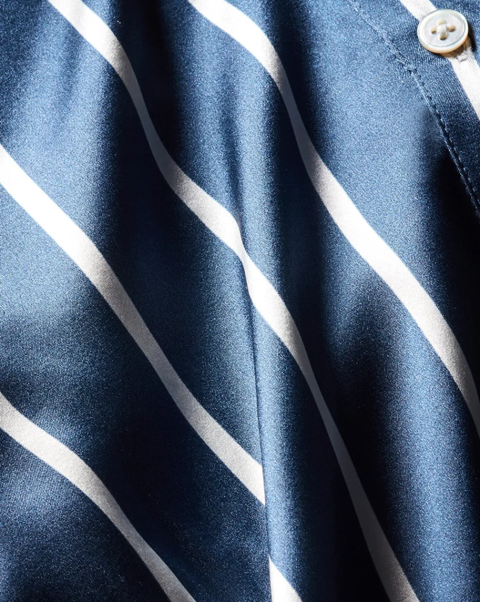 Expertly tailored from premium stretch silk, it features a relaxed fit, a high-low hemline, and side vents for ease of movement.