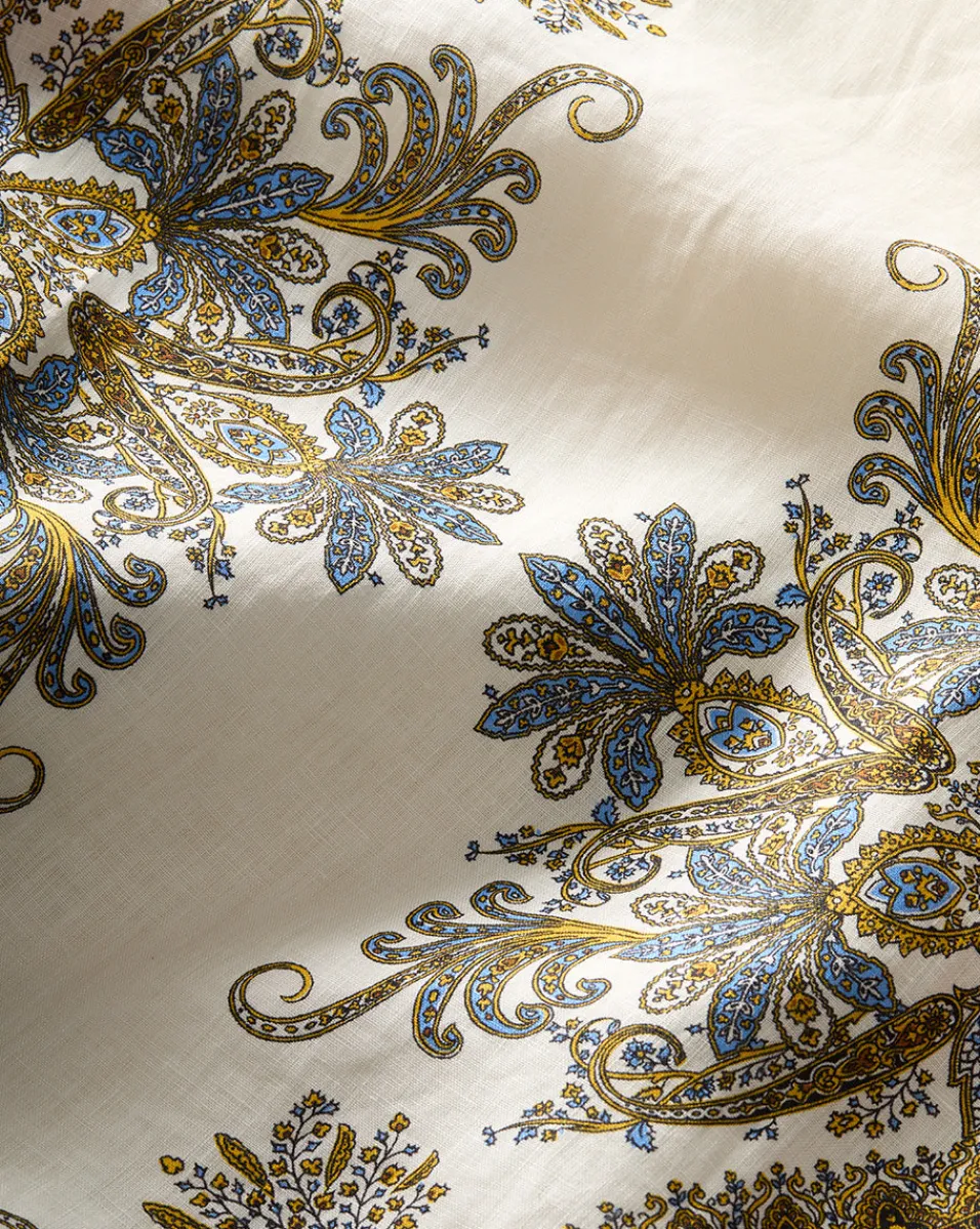 Made from lightweight linen, the Petra maxi dress contrasts a clean, streamlined slip silhouette with a beautiful ornamental floral—a winning combination for both ease and elegance.