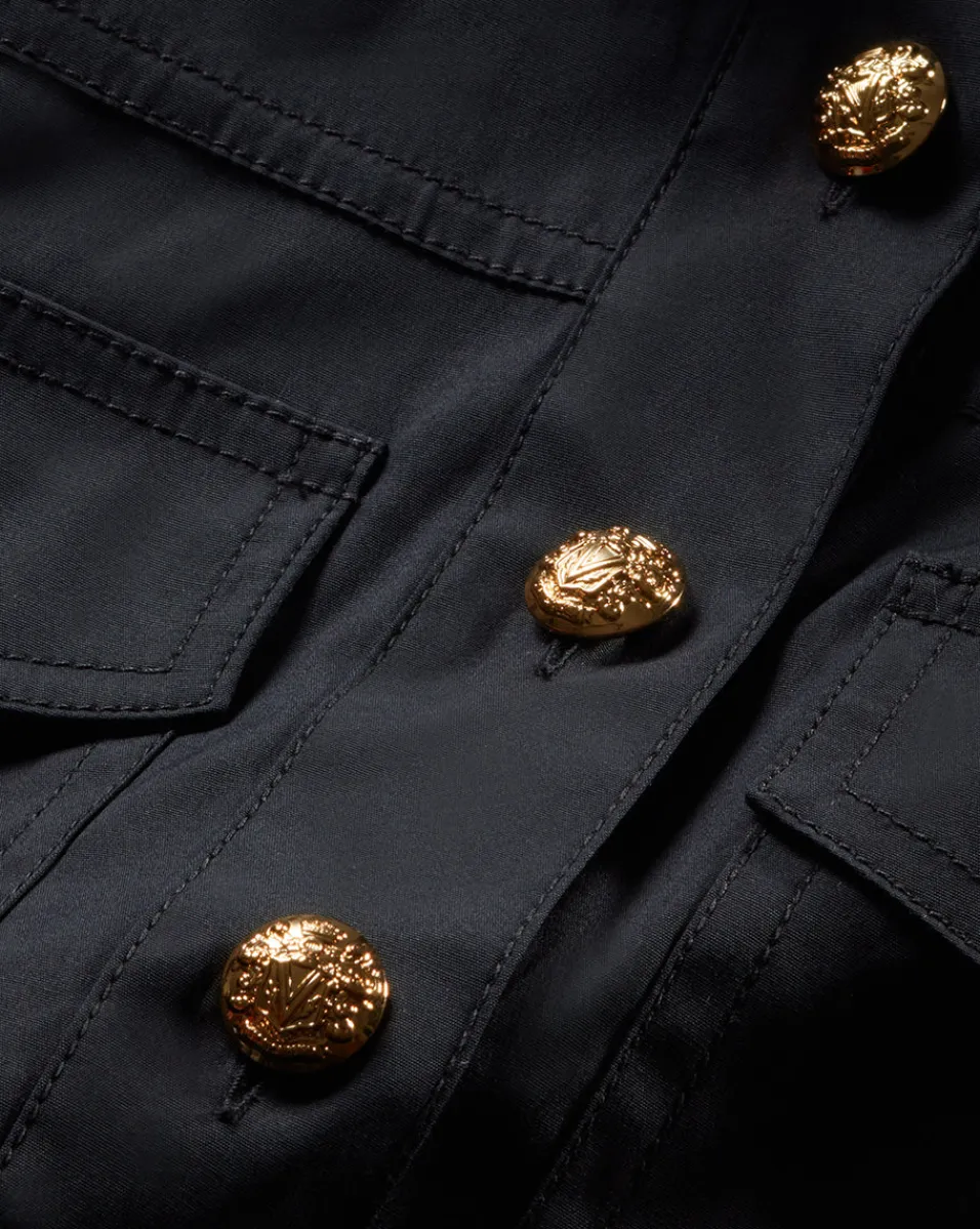 It’s finished with a neat collar, button-down placket and 4 patch pockets.