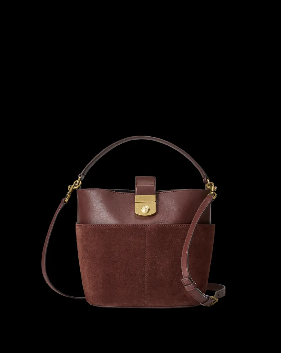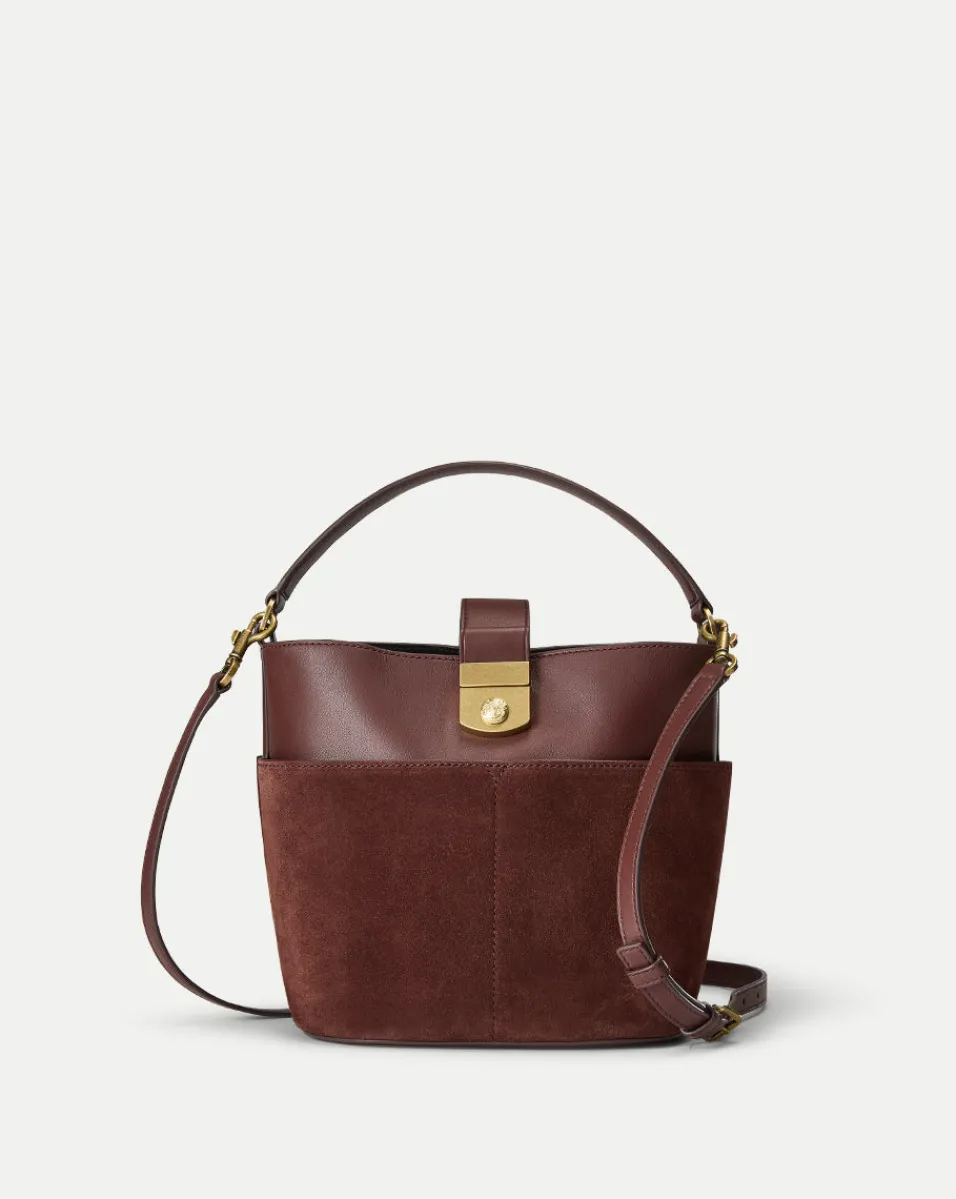 Small Crest Lock Suede Bucket Bag in>Veronica Beard Discount