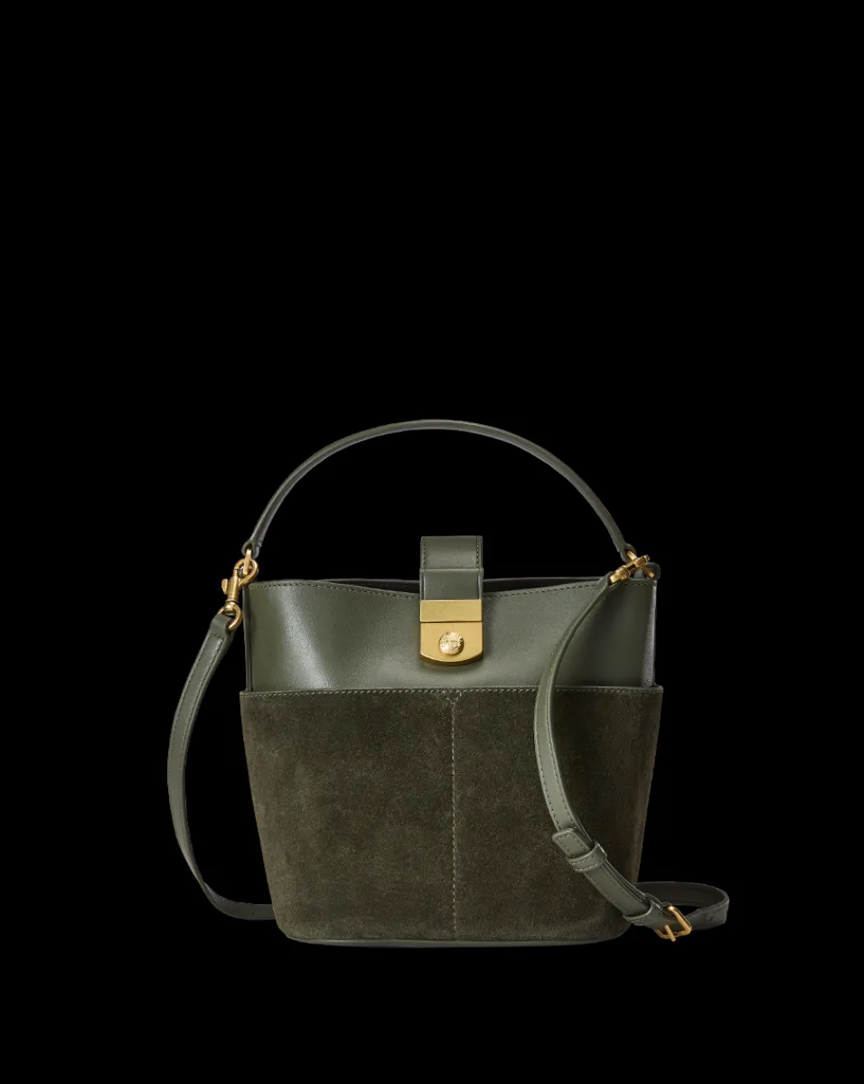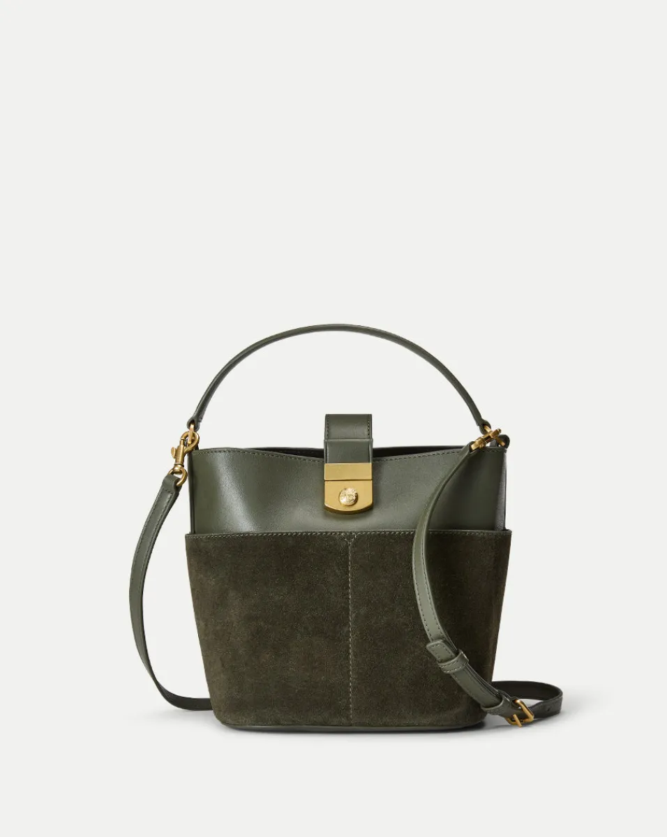 Small Crest Lock Suede Bucket Bag in>Veronica Beard Outlet