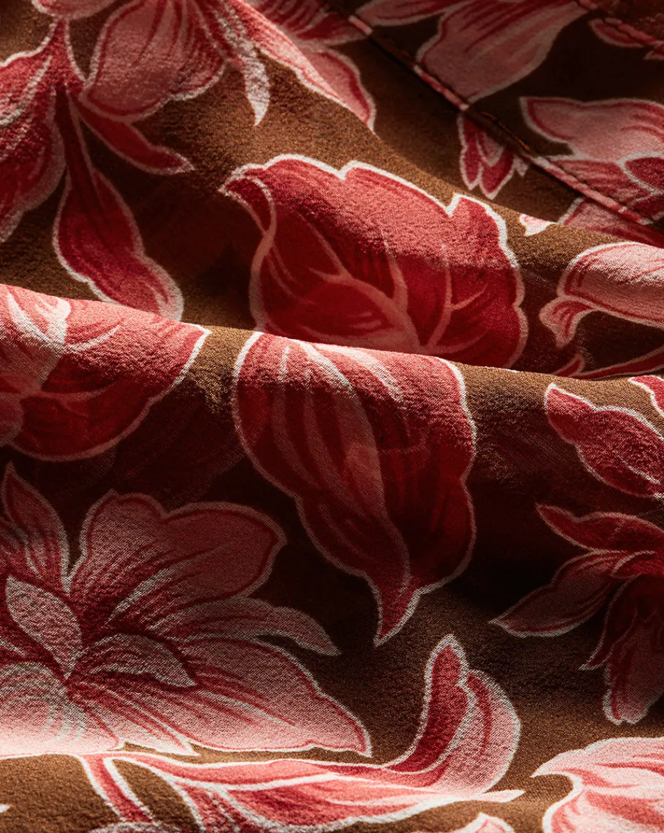 Patterned this season in feminine florals, it’s made from a 100% washed silk georgette and features subtle front-pleating and airy blouson sleeves.
