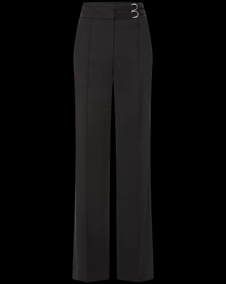 The high-waisted silhouette is finished with elongating seaming down the front.