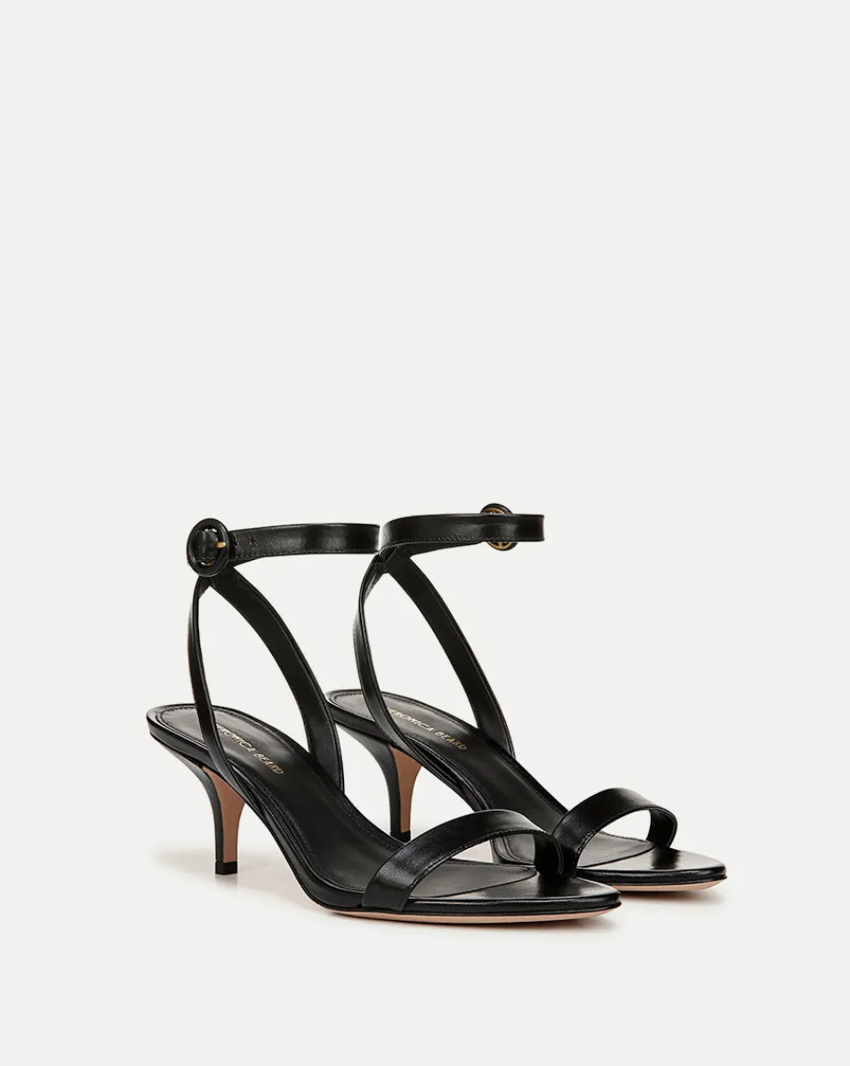 A minimalist leather sandal with slender straps and a just-right 2” heel.