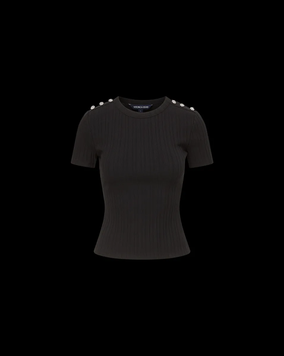 Draya Rhinestone Button Tee in>Veronica Beard Sale