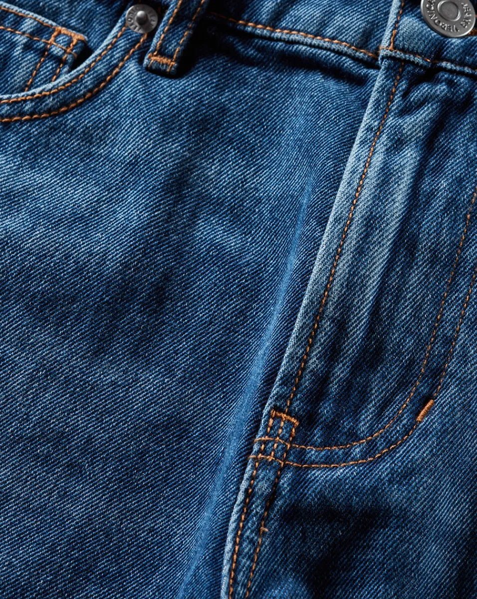 Made from 100% cotton, rigid denim gives them a vintage feel, while a versatile wash gives them staying power.