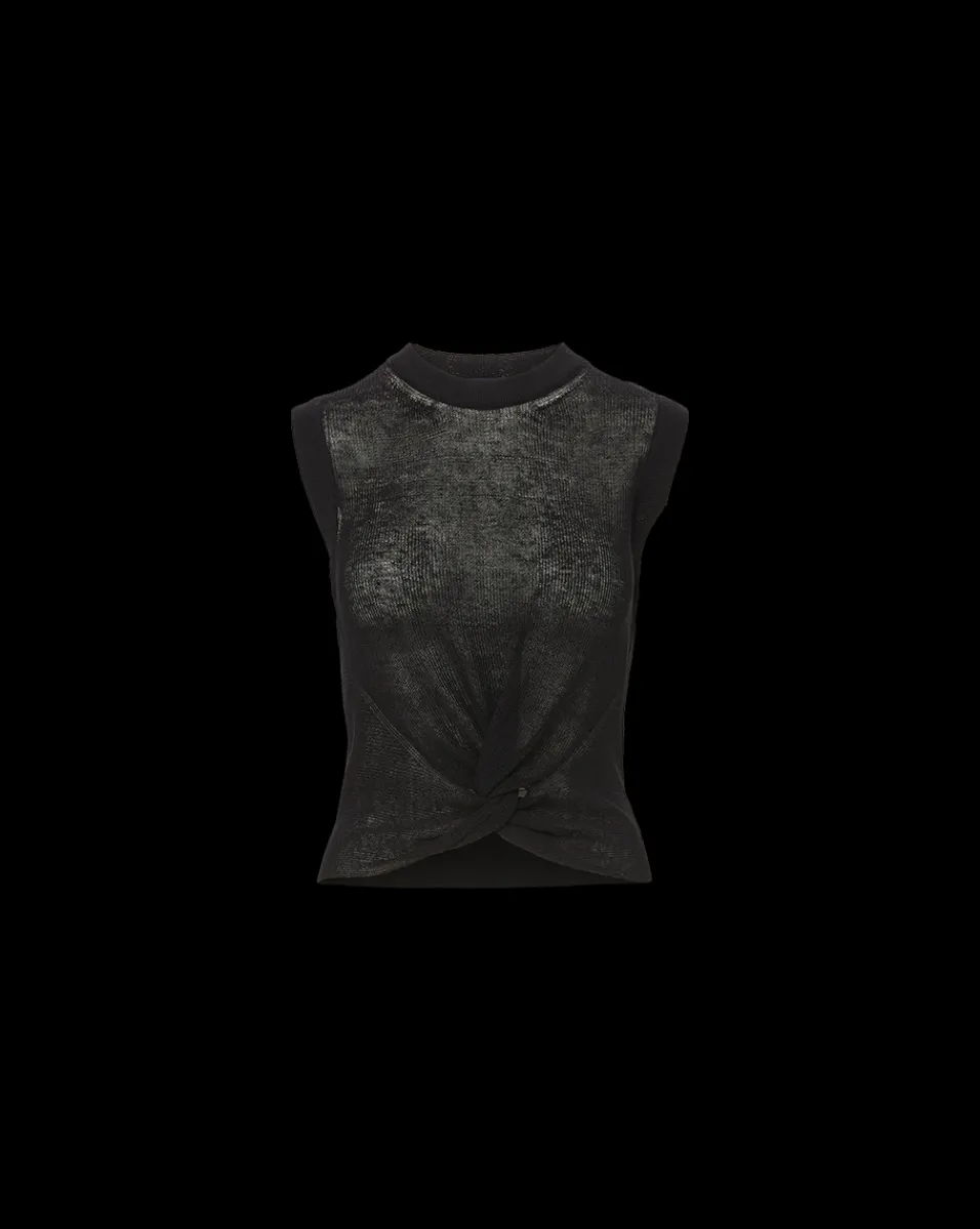 Crafted from a linen-blend, this twist-hem top features a classic crew neckline and sleeveless silhouette.