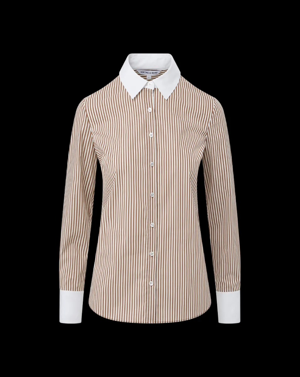Marisol Poplin Shirt in Deep Ochre/White>Veronica Beard Sale