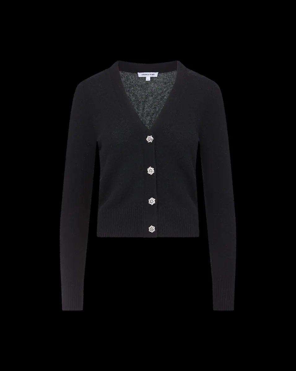 Solene Rhinestone-Button Cashmere Cardigan in Black>Veronica Beard Best